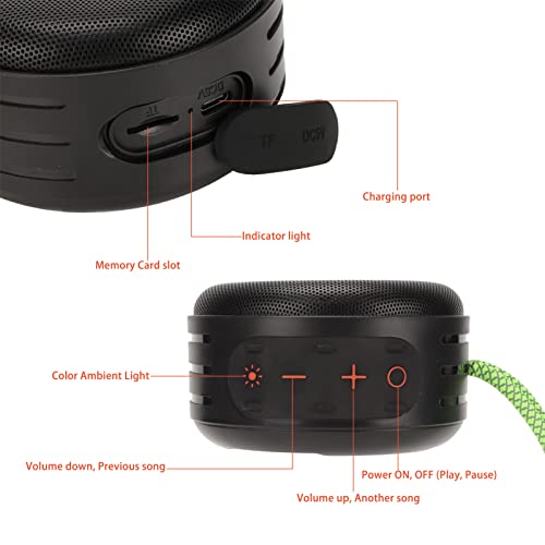 Specificaties: IP65 Mini Bluetooth-luidspreker, Compacte Draadloze Luidspreker met 5 W Audiostuurprogramma Krachtig Geluid, Kleurrijk Licht, 1800 MAh-batterij, Compacte en Draagbare Buitenluidspreker voor Kamperen,