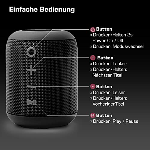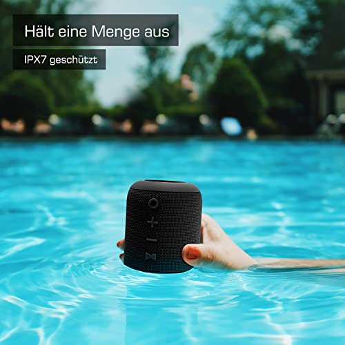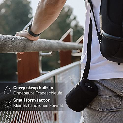 Neem het feest overal mee naartoe – Speel overal muziek. De miniluidspreker weegt maar 400 g en is 8,6×11,5 cm – de draadloze Bluetooth-luidspreker heeft een draagriem en past makkelijk in uw tas.