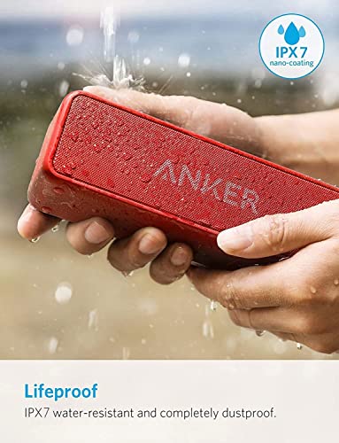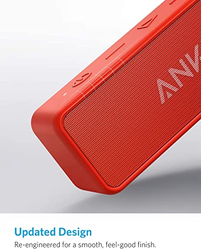 Anker SoundCore 2 Bluetooth-luidspreker, fantastisch geluid, enorme bas met dubbele basdrivers, 24-uurs accu, verbeterde IPX7 waterbescherming, draadloze luidspreker voor iPhone, Samsung (rood)